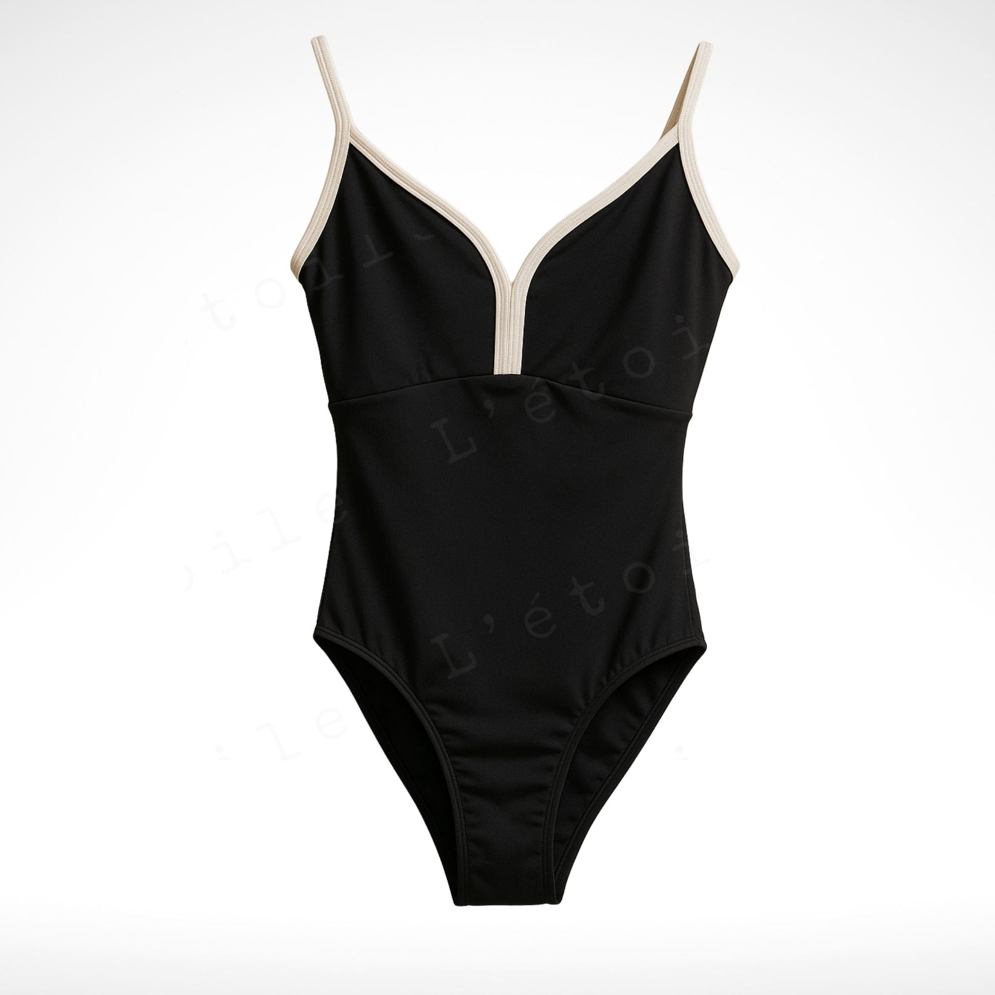 Serena Ballet Leotard – Classic Black with White Velvet Accents | Premium Dancewear by L’étoile